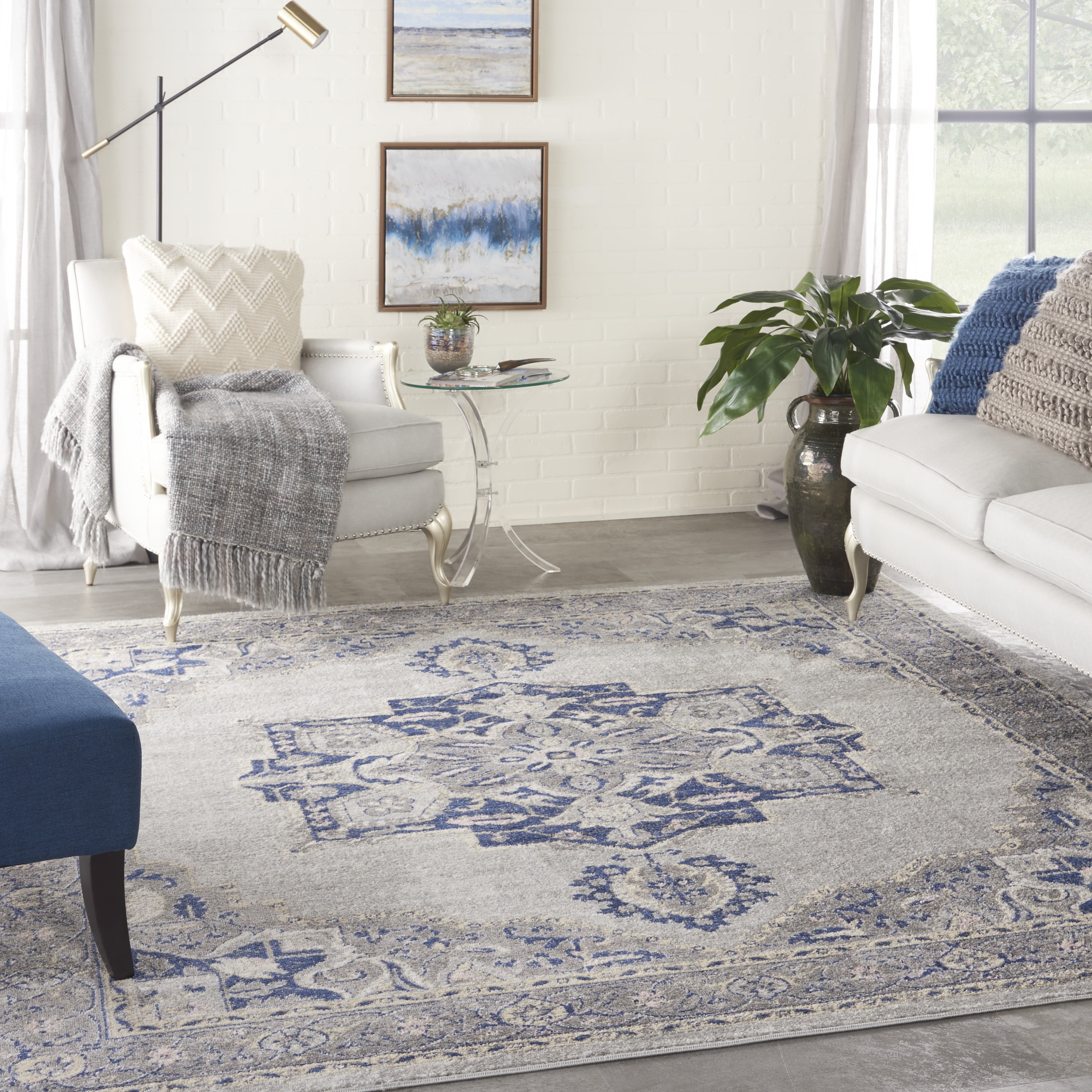 Nourison Tranquil Persian Farmhouse Grey Navy 8 10 X 11 10 Area Rug 9 X 12 Walmart Com